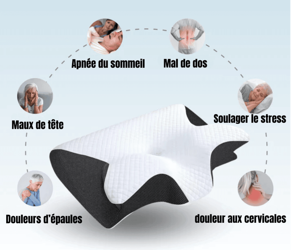 Le coussin présente un design innovant avec un creux central qui maintient votre colonne vertébrale alignée, réduisant ainsi les raideurs et les douleurs au niveau du cou. Ses rebords surélevés offrent un soutien supplémentaire pour vos épaules et votre dos.