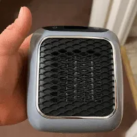 ““J’ai remplacé le gros radiateur d’appoint de notre salle de bain par celui-ci pour libérer de l’espace sur le comptoir. Il continue de fonctionner pendant une minute après l’avoir éteint, ce qui n’est pas un gros problème. Notre salle de bain est de la taille d’une salle de bain complète typique et il la chauffe bien. Il s’insère parfaitement dans la prise comme le montre la photo. Nous le partageons avec une multiprise sans problème. Super petit radiateur !!”