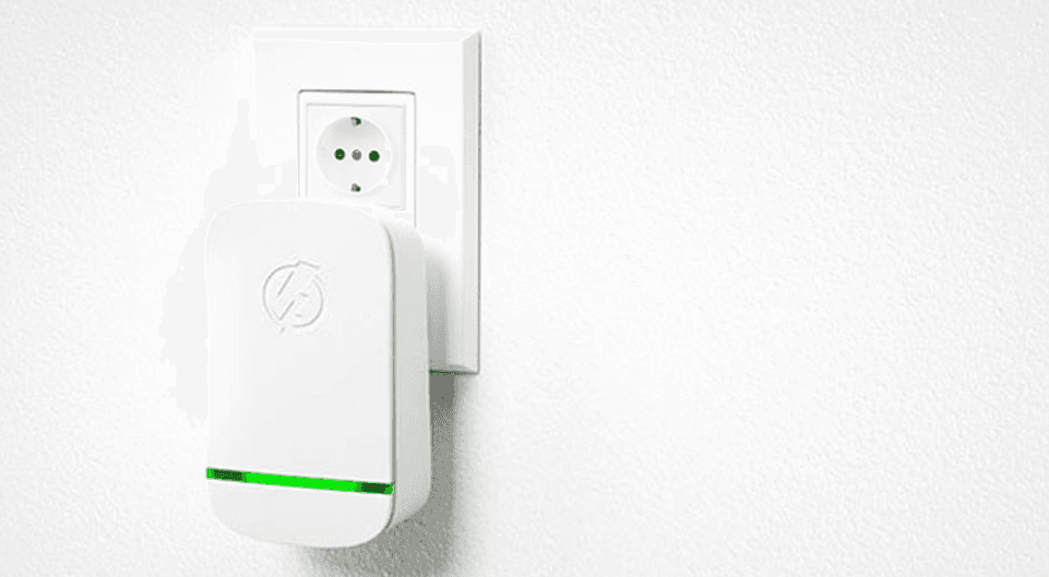 Here’s what the SmartEnergy device looks like. It’s a small box that plugs into any electrical outlet. The beauty of it is that everyone can benefit from it, whether they live in an apartment, a house, or a mobile home. All you need is an available power socket.